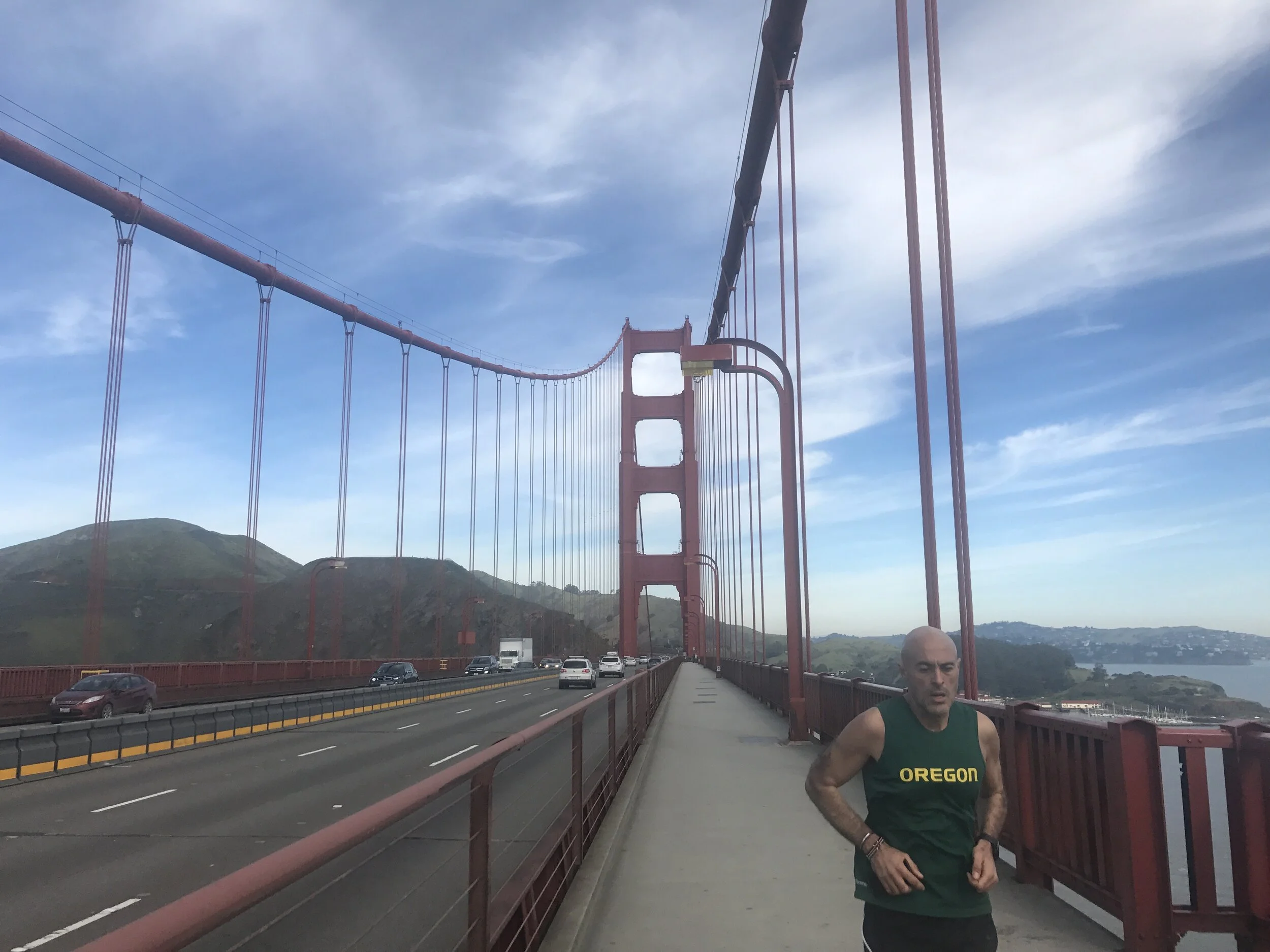 La mañana fue algo más llevadera de lo esperado. Nos dimos una ducha fría y sin pensarlo demasiado salimos a correr por San Francisco. Nuestra última carrera en territorio americano. Fuimos en dirección el mar, corrimos por la bahía de San Francisco, cruzamos los barrios de Embarcadero, North Beach y Marin District hasta alcanzar el Golden Gate. Hicimos el trayecto de ida y vuelta. Sabíamos que era una chorrada, ir para volver. Pero nuestra vida está repleta de chorradas y estupideces. Y una más no se iba a notar. Lo que sí que se notó fueron los kilómetros que fuimos acumulando. Como colofón habíamos hecho la tirada más larga del viaje. Pero no había tiempo para el descanso. Nos dimos una segunda ducha, hicimos el check-out, dejamos las maletas preparadas en el coche y exprimimos las últimas horas visitando Castro District.