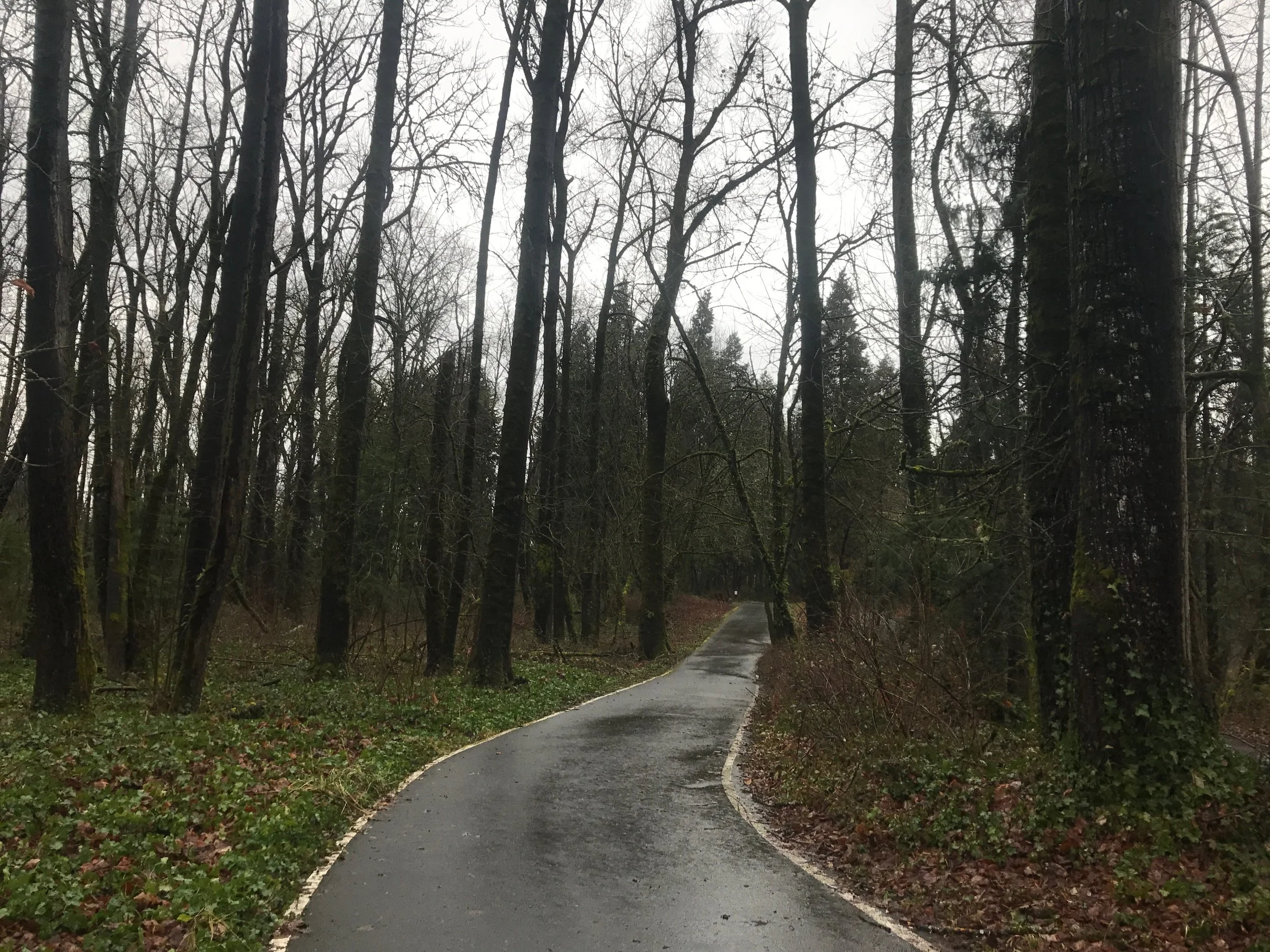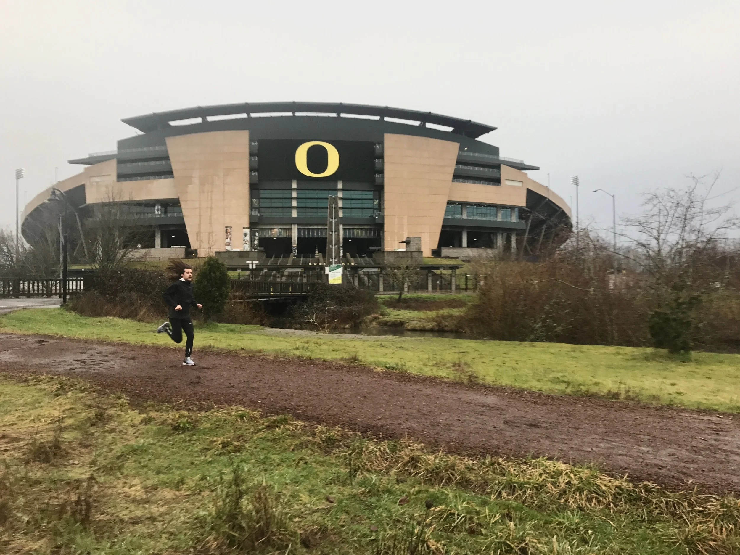 Nuestro séptimo despertar en Oregon fue como los seis anteriores: LLOVÍA. ¡Menuda pesadilla! No teníamos fórmula para evitar la depresión. Le dimos un vistazo a la aplicación meteorológica y nada indicaba que en las próximas dos, tres horas dejase de llover. No teníamos alternativa, cambiarse y no cambiar la rutina. Eso sí, dejamos la calefacción de la habitación encendida y las toallas bien cerca del radiador. A escasos metros del hotel, cogimos el paso verde de Franklin City Park y cruzamos el río Willamette (el mismo que traspasábamos en Portland para ir al Coava Coffee de Southeast) por el Knickerbrocker Bicycle Bridge para llegar al Pre’s Trail. Un bucle de algo más de 6,5 kms cuidado con sumo mimo por las donaciones anónimas que año tras año se conceden a los Friends of Pre’s Trail. La mañana podía parecer desalentadora pero cualquier atisbo de desánimo desapareció en cuanto nos pusimos a darle vueltas al recorrido. Vicenç se conformó con 2 vueltas, yo quise estirar una vuelta más para completar una media maratón. Cuando llegué a la habitación del hotel, Vicenç ya se había duchado, se había vestido e intentaba entrar en calor cubriéndose de nuevo con el edredón. Tiritando, me dijo: